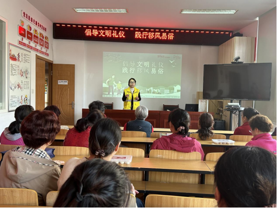 活动当天,志愿者首先通过PPT演示,用通俗易懂的语言向老人们详细解读了移风易俗的核心内涵、重要意义以及相关政策要求。PPT内容结合日常生活案例,从破除封建迷信、简化婚丧嫁娶流程、倡导勤俭节约、反对铺张浪费等多个方面进行了生动讲解,将抽象的理念转化为贴近老年人生的具体场景,帮助老人们快速理解移风易俗对个人、家庭和社会的积极影响。