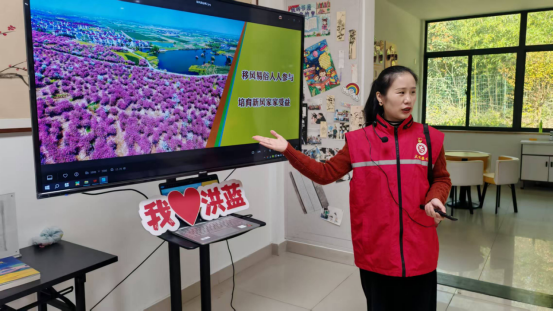活动邀请了洪蓝街道“洪色之声”理论宣讲团成员张学琪担任主讲人。张学琪围绕垃圾分类、文明旅游、厚养薄葬等主题,用通俗易懂、贴近生活的方式讲解了移风易俗的重要性。家长与孩子们认真聆听,积极互动,现场气氛热烈。“垃圾不是脏,分对才是宝。”她以日常生活中常见的场景切入,通过图文展示、趣味问答等形式,讲解垃圾分类的标准和意义。“厨房里的菜叶、果皮是厨余垃圾,用过的纸巾却是其他垃圾,很多人容易搞混。”她一边说,一边通过ppt展示图片,带孩子们现场分类,并通过快问快答方式及时检验大家的学习效果。“我知道,废旧电池是有害垃圾,要单独投放。”一年级的刘嵩祺自信抢答,活动氛围轻松愉快,环保理念悄然入脑入心。