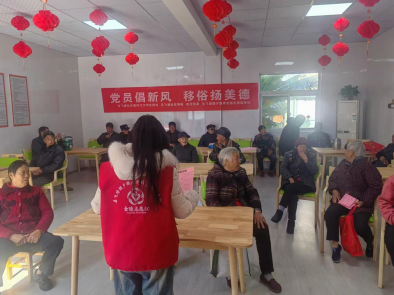 活动中,党员张雪蛟来到助餐点通过面对面讲解,发放宣传彩页等方式,向村民宣传婚事新办、丧事简办、勤俭节约等文明理念,用实际行动引导群众转变观念,摒弃铺张浪费、攀比之风。