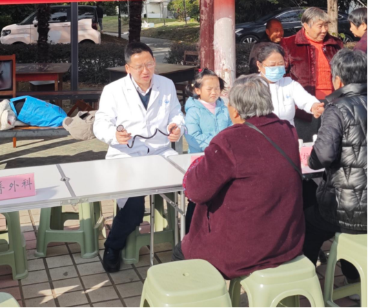 活动现场,医疗团队提前布置到位,各类诊疗设备整齐摆放,吸引众多老年人前来咨询就诊。义诊专区涵盖眼科、普外科、骨科、呼吸内科及护理服务等多个领域,医护人员耐心接待每一位老人,细致询问身体状况、针对高血压、关节疼痛、眼部不适等老年常见病症,提供专业诊断建议、用药指导及健康调理方案,同时为老人测量血压、血糖,细致解答日常保健疑问,切实解决老人就医不便难题。