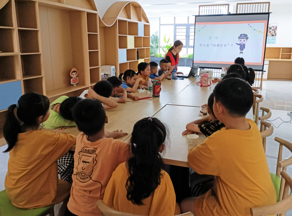 志愿者向青少年们介绍什么是“扫黄打非”及其意义,同时告知大家非法出版物的危害,增强孩子们对非法出版物及有害信息的辨别和防范意识,帮助青少年提高辨别能力,鼓励大家自觉抵制和远离有害出版物和不良网络信息。