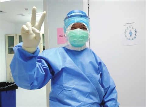 “小年夜那天,护士长就要我们穿防护服。从那时起,我和老李就住在医院,没回过家。”李玉军的妻子尚兴兰也是一名护工,干活麻利,说话爽直,她和老李同在一个病区工作。老李照顾患者生活,她负责打扫卫生。据了解,夫妻俩来自连云港,在该院做护工已超过10年,人感染H7N9禽流感、甲型流感等传染病患者救治,他们都经历过。“没啥怕的,以前也穿过防护服。”尚兴兰说。