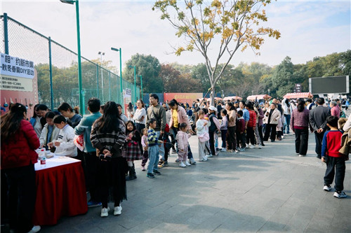 互动游戏区热闹非凡,中式投壶场地围满了跃跃欲试的居民,从孩童到长者都来一试身手,每当有人投中,便会引来一片喝彩。在非遗香囊DIY区,手工爱好者认真地填充艾草、制作香囊,将秋冬的芬芳握在手中。