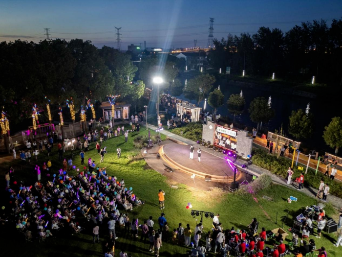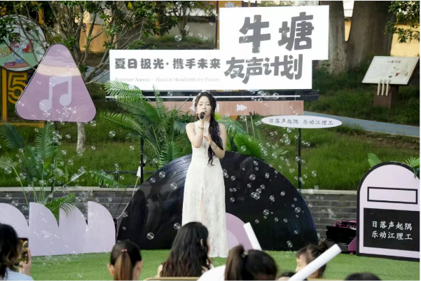 在青云园广场,江苏理工学院学子用《稻香》《极光》等15首金曲点燃夏日夜空,开放麦环节让居民与青年同台合唱,校地融合的青春活力扑面而来;在牛塘镇职工夜课堂,八段锦、书法、中国舞等课程让职工们从“车间”走向“舞台”,汇报演出中,瑜伽学员的柔美身姿与声乐学员的《我和我的祖国》赢得掌声如潮。