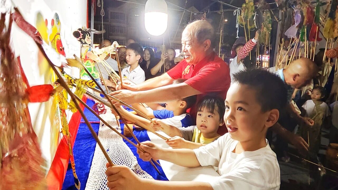 千年非遗诉说着家国情怀,为双节添彩。利港公园广场上,“非遗瑰宝 传承经典”皮影戏专场《孙悟空大战牛魔王》《三打白骨精》等经典剧目轮番上演,光影交错间赢得观众阵阵喝彩。演出后,观众在传承人指导下亲手体验皮影操作,感受非遗魅力。