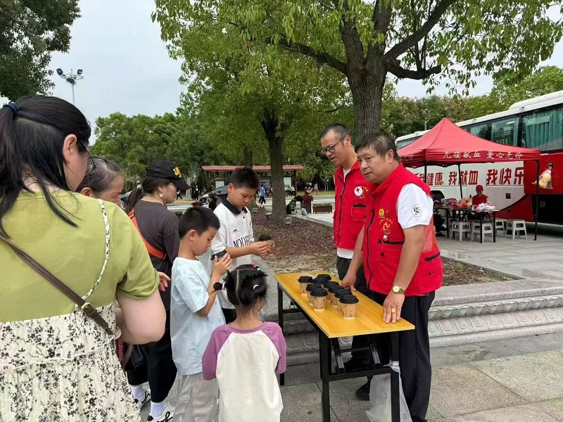 10月1日的狼山北麓,流动献血车旁暖意融融。身着红马甲的志愿者,手捧“椰香西米露”与“养生红枣珍珠汤圆”,将节日的甜意递到每位市民手中。刚完成祈福下山的潘建,看到献血车便径直上前,捐献400毫升全血。“刚爬完山,身体状态正好,用健康的方式为祖国庆生,特别有意义 。”他笑着说道。