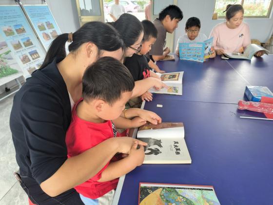 围绕“一本好书启迪人生”,卫海村返乡大学生志愿者从思想启迪、人格塑造、文化传承、自我认知、实践赋能五个方面入手,为孩子们精心挑选了不同类型的书籍。在家长的陪伴下,孩子们沉浸式阅读。