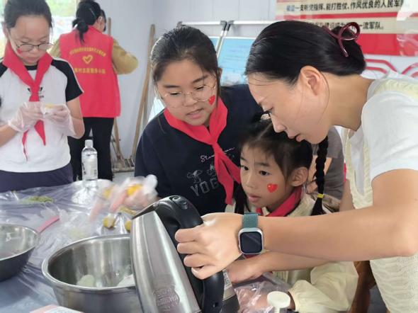 月饼始终是中国人“天人合一”哲学的具象化表达。手工冰皮月饼制作环节,当父母握着孩子的手将面团压模成型,他们传承的不仅是配方,更是“花好月圆人团圆”的文明基因。在志愿者、家长、小朋友们的多方面合作下,制作过程有条不紊的进行着。烧水和面、计量、搓团、添馅、压模、装盒套袋……一个个色彩鲜艳的冰皮月饼就做好了。