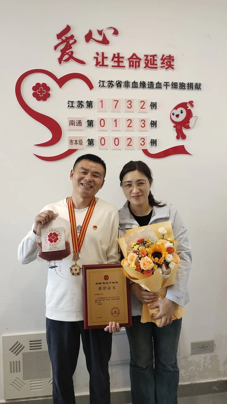 非血缘造血干细胞配型成功的概率不到十万分之一,每一例成功配型都堪称“生命奇迹”。这份奇迹,在不到一年的时间里,两次眷顾了王金建。2025年11月18日,南通市红十字志愿者王金建成功捐献378毫升造血干细胞混悬液,为远方素不相识的血液病患者点亮生命的希望。