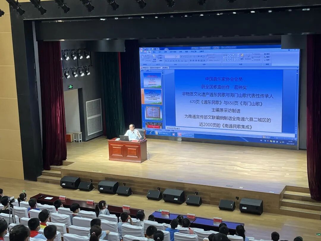活动邀请到4位非遗传承人走进校园,带领小朋友们零距离接触非遗。江苏省级非遗传承人崔立民为孩子们带来了有关“通东民歌传承”的讲座;南通市级非遗传承人周武珍和海门区级非遗传承人郁宗翰手把手教孩子们沈绣;海门区级非遗传承人吴坤杰现场为大家展示竹木雕刻。