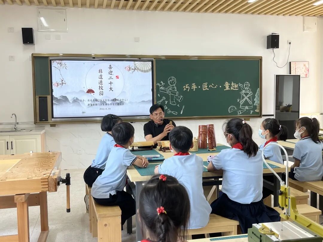 每年6月的第二个星期六是我国的文化和自然遗产日,昨日,区文化馆(非遗保护中心)联合东洲小学长江路校区,开展“喜迎二十大非遗进校园”活动,动员全校同学共同参与、关注、保护和传承文化遗产。