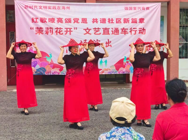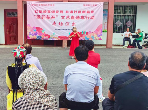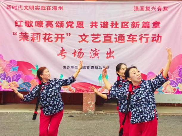 “早早来占座,就等着看这场家门口的演出!听说有舞蹈和主题歌曲联唱,特意喊上老姐妹一起来!”近日,连云港市海州区浦西街道新站社区院内热闹非凡,板凳被早早赶来的居民坐得满满当当,在大家的热切期待中,“茉莉花开”文艺直通车行动正式拉开帷幕,为社区居民带来一场贴近生活、充满温情的文化盛宴。