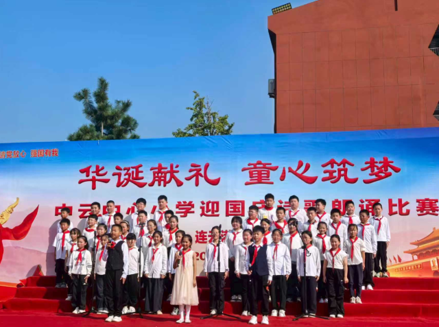 为庆祝中华人民共和国成立76周年,厚植未成年人爱国主义情怀,践行“请党放心,强国有我”的青春誓言,近日,连云港市开发区中云街道携手中云中心小学举办“华诞献礼童心筑梦”迎国庆诗歌朗诵比赛。中云中心小学三至六年级全体学生以集体朗诵的形式,用真挚的情感与昂扬的声音,为祖国献上了一场充满敬意与梦想的视听盛宴。