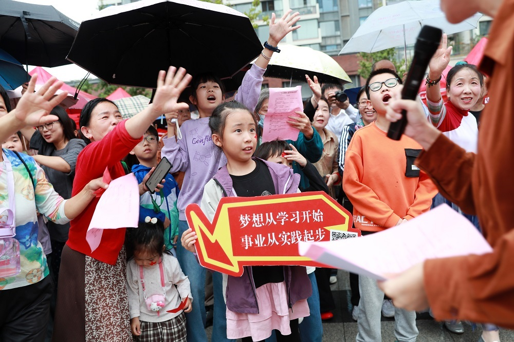 精彩不止于此,文艺汇演中穿插的“学习强国”知识有奖竞答环节更是掀起小高潮。围绕“国庆”“中秋”双节设计的题目刚一念出,市民们就纷纷举手抢答。