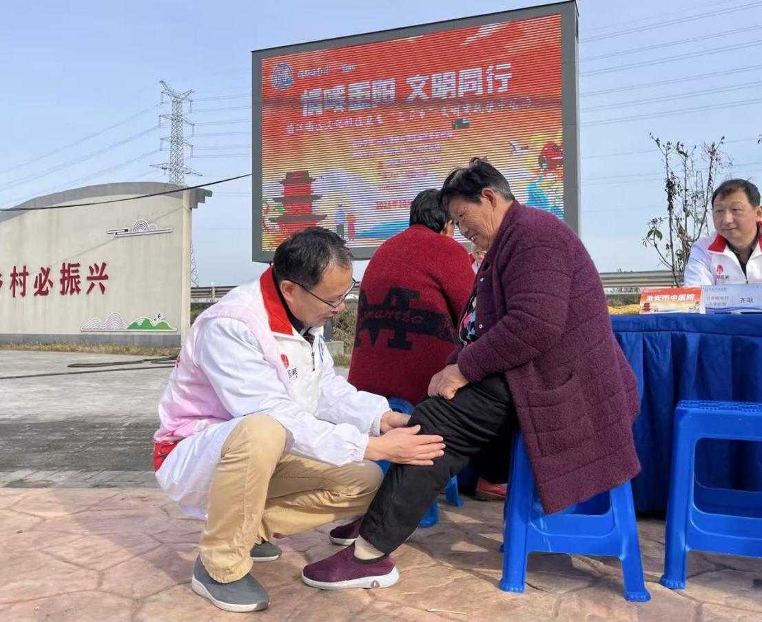 “大爷,您血压偏高,而且腿部浮肿,一定要尽快去医院做个全面检查。”在义诊区,来自市中医院和市第三人民医院的专家们刚一落座,便被村民们团团围住。医生们耐心细致地询问病史,仔细翻阅村民带来的既往检查报告,提供专业的诊疗建议和日常调理方案。一旁的血压、血糖测量点前排起了小队,医护人员一边熟练操作,一边温和叮嘱:“阿姨,餐后血糖要控制,甜食要少吃点呀!”细致地检查、关切的问候,让每一位前来咨询的老人都感受到了实实在在的关怀与守护。