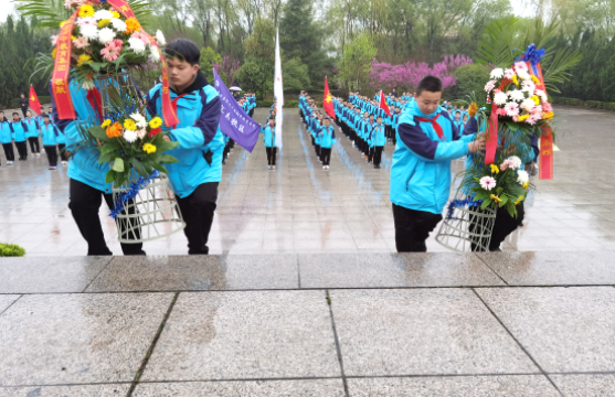 4月1日,上冈高中开展清明节祭扫活动,近千名师生在烈士纪念碑前,瞻仰革命先辈,表达对烈士的崇高敬意和深切悼念之情。