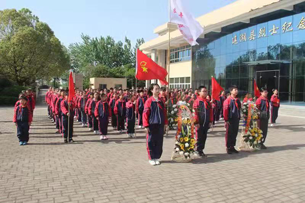 青山静默,苍松肃立。在庄严肃穆的“华中鲁艺烈士纪念碑”前,该校少先队员们向长眠于此的英烈们三鞠躬,聆听了《华中鲁艺悲壮史事》《九女投河》红色党史故事,重温了入队誓词。最后少先队员们参观了位于华中鲁艺纪念碑旁的建湖烈士纪念馆,一幅幅照片、一件件文物生动地展示了华中鲁艺烈士的丰功伟绩,激励同学们继承先烈遗志,坚定勤学决心。