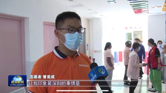 志愿者曾亚成:让我印象最深刻的事情是我们在这里维护现场秩序和接种(引导)能够得到认可和赞同,我们做的这些行动为抗疫和接种疫苗贡献自己的青春力量。