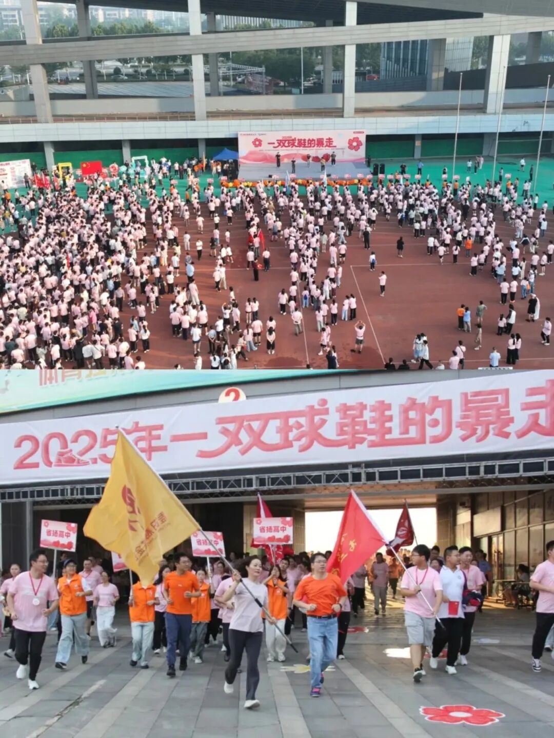 10月6日上午,第十四届“一双球鞋的暴走”活动在扬中市奥体中心体育场温情启幕。清晨6时许,2000余名身着粉色T恤的暴走队员怀揣公益热忱,与100多位身穿橙色T恤的志愿者汇聚一堂,在中秋佳节的特殊日子里,共同奔赴一场以爱为名的“爱心团圆”。