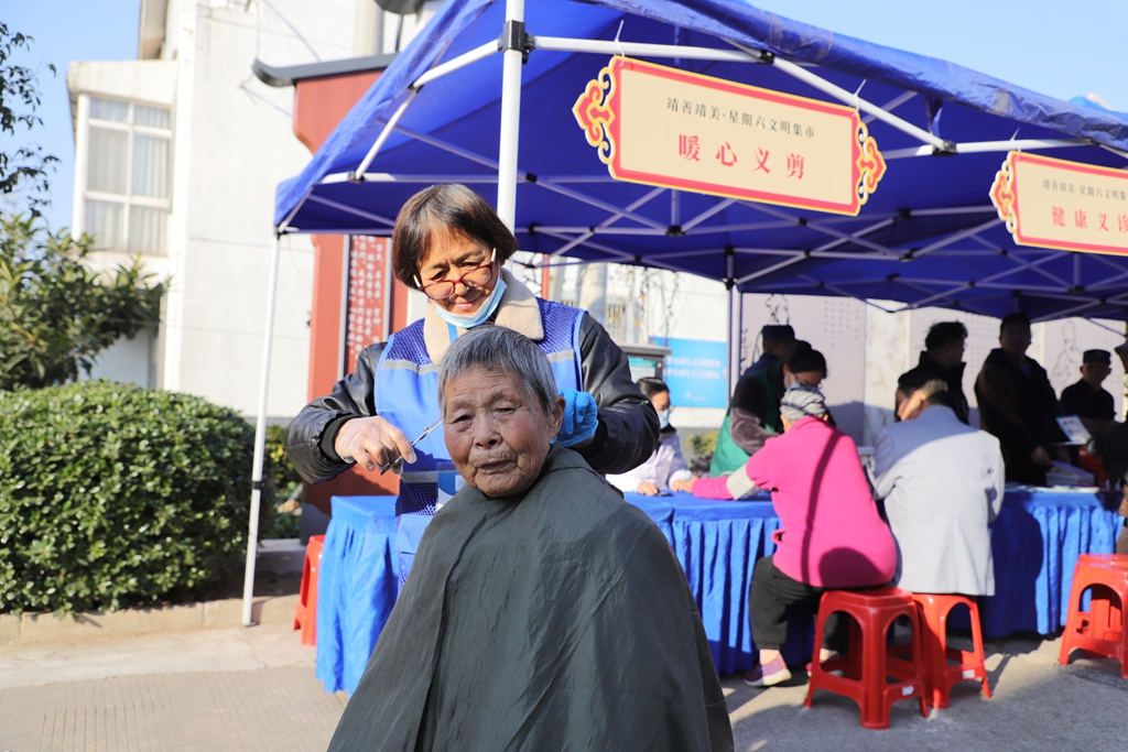 12月6日,“古镇烟火气 志愿文明风”——“靖善靖美·星期六文明集市”暨“三下乡·三进城”文明实践季市镇专场活动举行。活动融合文化展演、非遗体验、健康守护、便民服务及政策宣传于一体,设置八大主题活动区,将优质文明实践服务送到群众“家门口”。