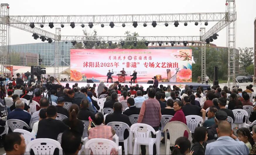 10月4日下午,沭阳县2025年“非遗”专场文艺演出在华东花木大世界举行,为市民带来了一场精彩纷呈的文化盛宴。此次活动由沭阳县委宣传部、县文化广电和旅游局主办,旨在弘扬非遗,展现花乡特色。演出汇集了苏北琴书、淮海戏、童子戏、工鼓锣等多种非遗代表性项目,专业剧团与民间团体同台献艺,展现了沭阳非遗的深厚底蕴和独特魅力。