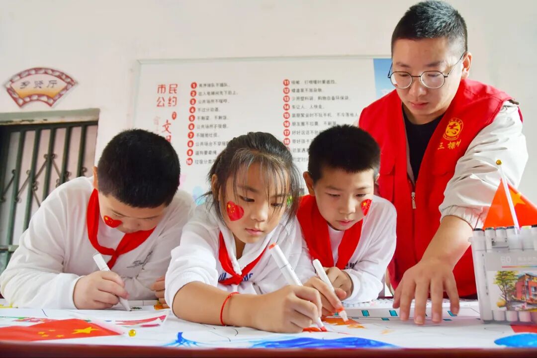 近日,宿迁经开区三棵树街道许圩文化大院内欢声笑语,热闹非凡。一场别开生面的“迎国庆”主题文化活动在此温情上演,辖区党员志愿者、退役老兵、退休教师以及青少年齐聚一堂,共同以看红色展板、听红色故事、绘百米画卷等活动,表达对祖国的深切热爱与美好祝福。大院内整齐陈列的一系列手绘展板,宛如历史画卷在众人眼前缓缓展开。洁白的百米长卷铺展开来,孩子们环绕四周,用稚嫩却充满想象的笔触,描绘出一幅关于祖国繁荣昌盛的壮丽画卷。最后,孩子们围在退役老兵身边,神情专注地倾听那段烽火岁月的记忆。